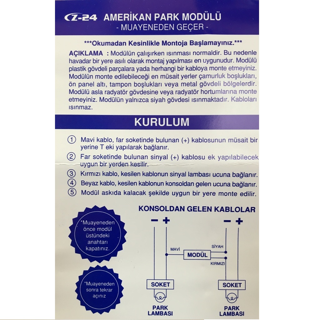 Amerikan Park Modülü ile park lambalarınızı açtığınızda sinyal lambalarınız sabit şekilde yanar.