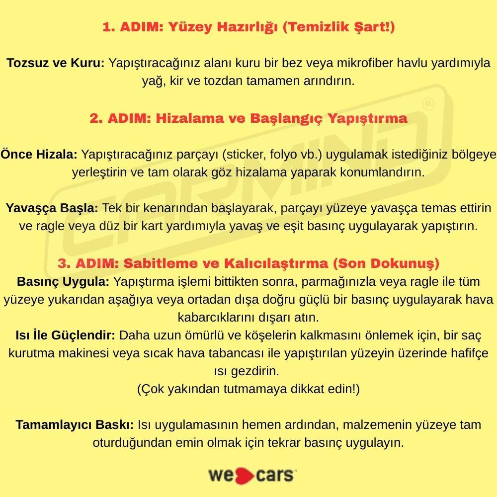 Aracınızın far camının dışına yapıştırma şeklinde uygulanmaktadır.