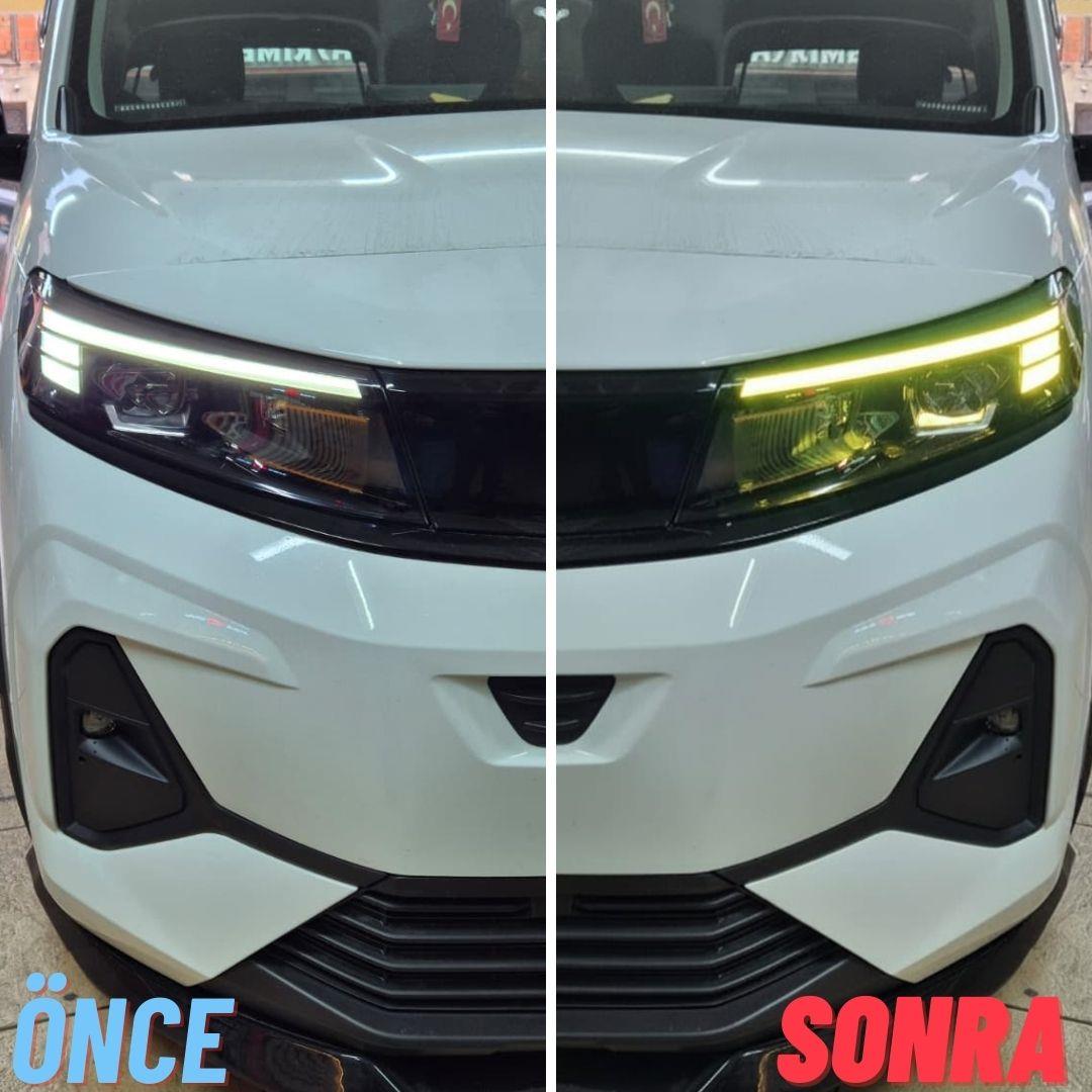 Sağ ve sol farlar için set halinde iki parça far stickerı olarak gönderilmektedir.